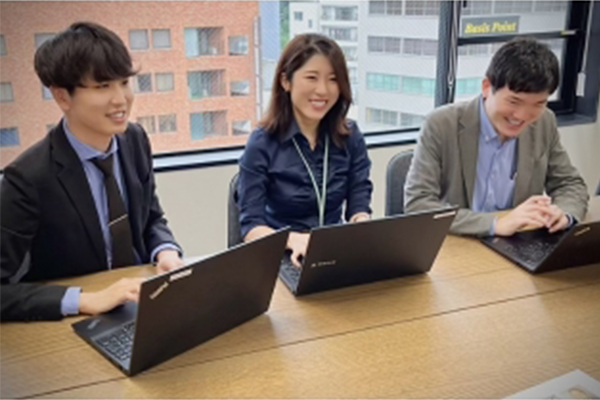 アクセスしやすいビジネスオフィスが立ち並ぶエリアにオフィスをかまえ、社内の雰囲気は皆仕事に一生懸命で、オンとオフの切替がはっきりしている方が多いです。社員同士も仲が良く、同期や先輩とお昼に外食に行くことが、楽しみのひとつです。OJTを中心にしっかりと研修を行うため、営業未経験でも安心の環境になります。若手や女性メンバーも大活躍しており、「できる/できない」や「やるか/やらないか」を考えることに時間を費やすのではなく、とりあえずできると仮定してやってみるという仕事の進め方をとっております。トライ&エラーを繰り返しながら自分が行った選択を正解にしていく努力をし続けることで成長できる環境があります。